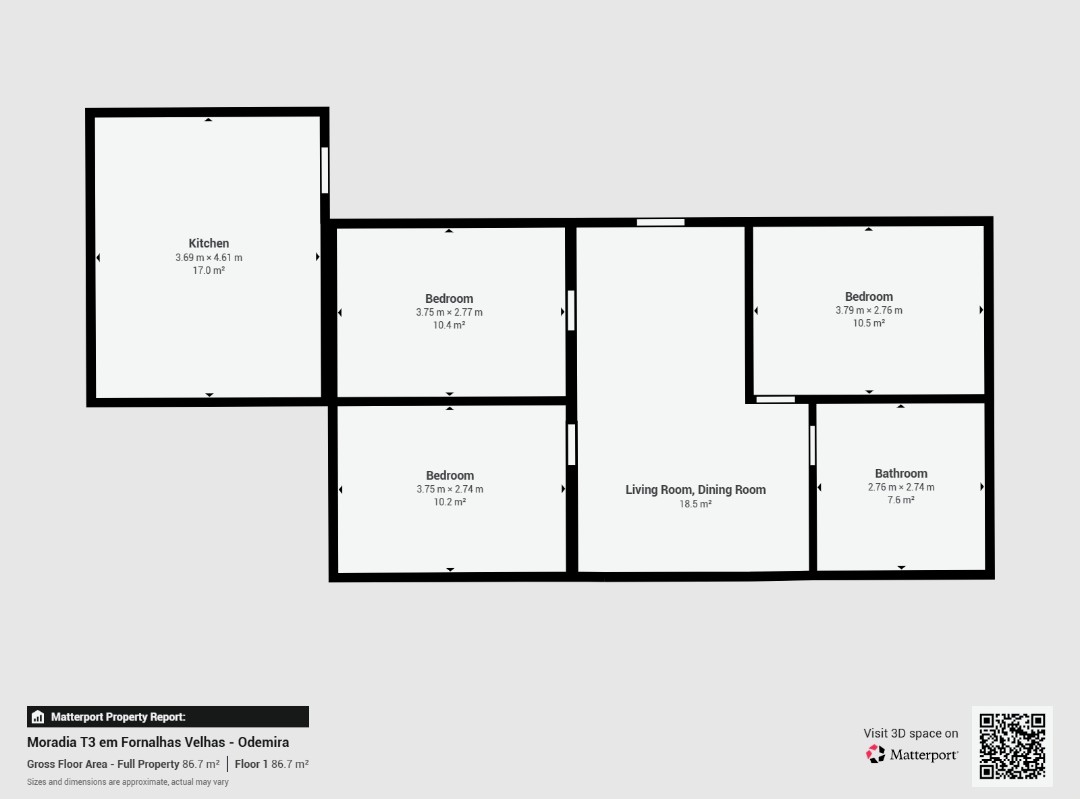​A moradia, pronta para ser remodelada ao seu gosto, dispõe de três quartos espaçosos, uma acolhedora sala de estar e uma cozinha com lareira de chão. Inclui ainda dois WC, sendo um interior e um exterior.